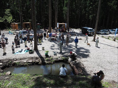 (伊賀並)2022年の春にはこのスペースで、ジビエ料理の試食や音楽を楽しめる、全国植樹祭を勝手に応援するイベント“もりであそぼ”を開催して盛況でした。なんせ、どれだけ大きな音を出しても、誰にも迷惑かかりませんから(笑)。コロナ禍で密を避けることが大事になったし、ソロキャンプなんかも流行してるから、ここは最適だと思うんですよ。