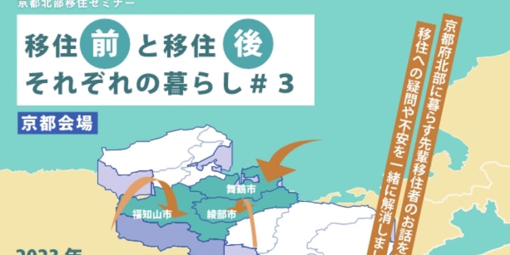 2023/01/28京都府北部3市として移住イベントに舞鶴市も参加します!! 京都府北部ってどこ??と思われた方、京都府北部は舞鶴市、福知山市、綾部市が京都府の北部に位置し、今の季節は雪の降る地域です。 自然を身近に感じ、地域で協力しながら生活を紡ぐ、そんな田舎暮らしをご希望の方、京都府北部ってどんな地域かお話を聞きに来られませんか??