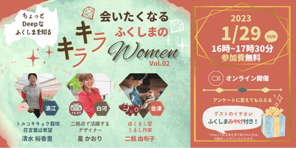 【1月29日】ちょっとDeepなふくしまを知る『会いたくなる、ふくしまのキラキラWOMEN』Vol.2