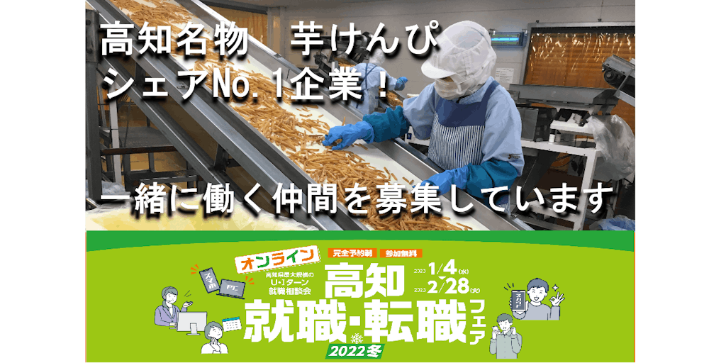 【1/4~2/28】高知名物「芋けんぴ」シェアNo.1✨の企業が出展!【オンライン高知就職・転職フェア2022冬】