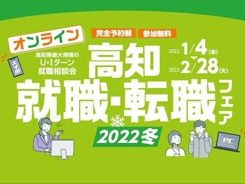 ▼(一社)高知県移住促進・人材確保センターが主催する、「高知県最大規模のオンライン就職相談会」を開催中です。 (株)エレパも参加します! 企業の方と直接お話しできる貴重な機会。 会社のこと、求人の内容のほか、ざっくばらんにお話しいただけるので、お気軽にご参加を! ↓↓↓ ご応募はこちらまで ↓↓↓ https://kochi-iju.jp/jinzai/kochi-job/