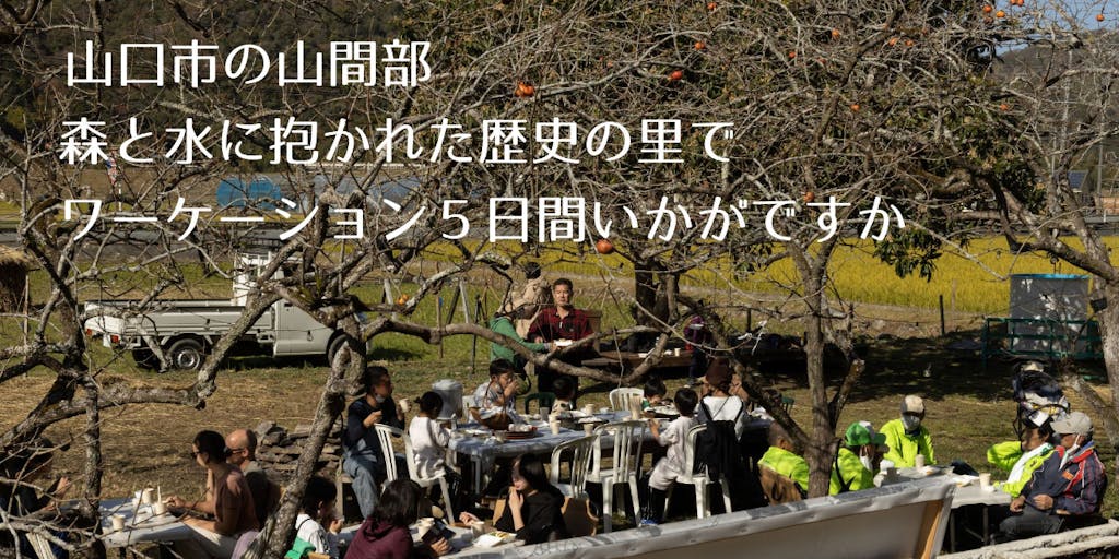 ・定員:4名 ・最小催行人数:1名 ・解散場所:JR新山口駅 ・スケジュール: ▶3/15(水) 14:00 JR新山口駅集合 「超民家やまね」(民泊)へチェックイン オリエンテーション ※トップ画像は、超民家やまねの前庭です。 夕食まで自由行動、テレワーク ▶3/16(木) 終日テレワーク 夕刻 希望者は、地元の皆さんと一緒に郷土料理づくり ポンポラ飯、カニ汁、やまのいもなど(食材の調達状況により変更があります。) ▶3/17(金) 午前~14:00頃 森林セラピー体験 終了後 テレワーク 夕刻 希望者は、テントサウナ体験 (別料金 参加人数により1人2,000円~3,000円程度) ▶3/18(土) 朝 テレワーク 午後 岸見の石風呂体験(焚く作業と入浴体験) ※石をドーム状に積んだ窯を焚いて熱気浴をする、日本版サウナです。 ▶3/19(日) 午前 徳地和紙のワークショップ(移住体験のお話なども) 午後 振り返り、アンケート記入 15:00頃 新山口駅解散