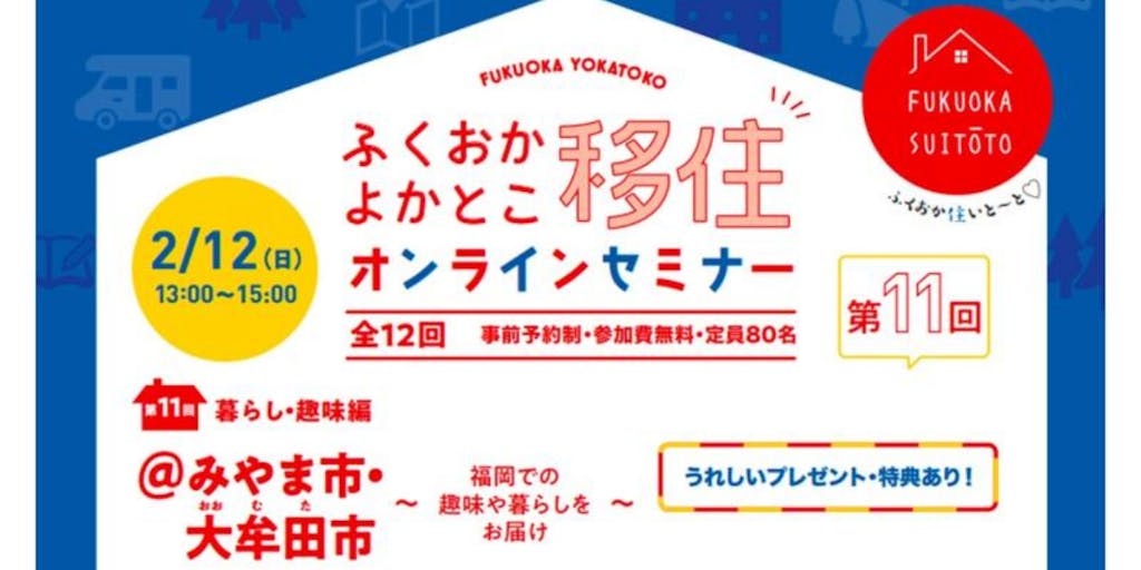 2023/02/12福岡って住みやすいと聞くけど実際のところどうなの︖ そんなあなたに︕はてなを解決できる移住オンラインセミナーを開催します︕