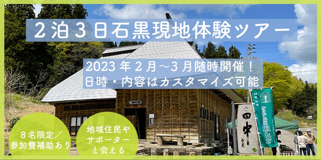 【2、3月限定:参加費補助あり】2泊3日石黒現地体験ツアーに参加しませんか?