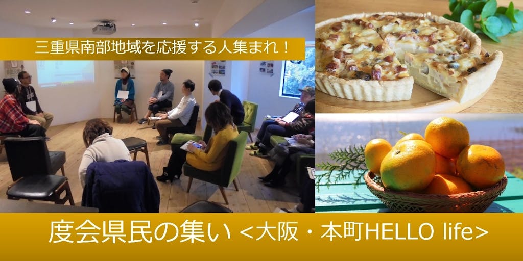 県民参加型プロジェクトは、三重県の南部地域を舞台として開催していますが、「都市部の方も県民同士で交流を図りたい!」との声を多くいただき、東京でも開催した「県民の集い」を12月7日(土)に、大阪・本町のHELLO lifeで開催します。