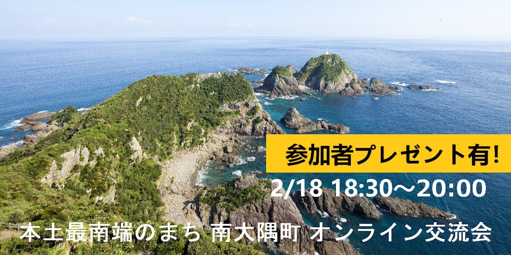 【2/18開催 オンライン交流会】本土最南端のまち 南大隅町(みなみおおすみちょう)の先輩移住者とゆっくりお話ししてみませんか?