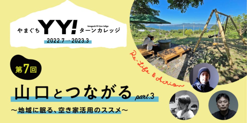 空き家をリノベーションして、やまぐち暮らしを実践中の3名をゲストに、空き家の魅力、探し方、リノベーションのことをお話しいただきます。これから空き家探しや空き家活用を実践してみたい!と考える皆さんに是非聞いてほしい内容です◎