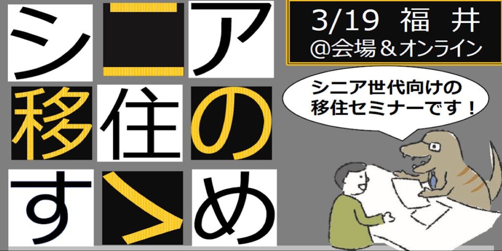 シニア世代の移住に向けて、有益な情報を盛りだくさんでお届けしますので、ぜひご参加ください🦕 🌟希望者には、セミナー後に移住相談も承ります🌟 (13:00~14:00/お一人30分/要事前予約)