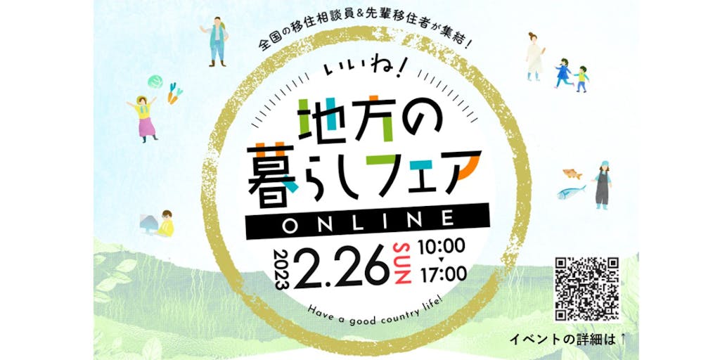 2023/02/26東京在住の若者世代・子育て世代をメインターゲットに、地方の暮らしの魅力を発信し、地方への移住を進めることを目的とした移住イベント「いいね!地方の暮らしフェア オンライン」を開催します。