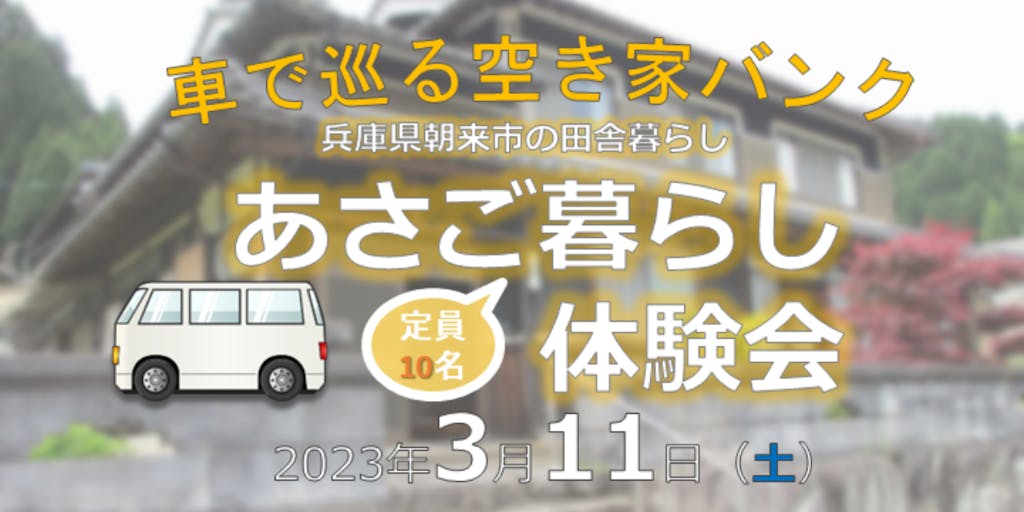 【募集定員上限になりました!】兵庫県朝来(あさご)市の空き家バンクのリアルわかる! 「移住担当者と車で巡る空き家バンク」あさご暮らし体験会