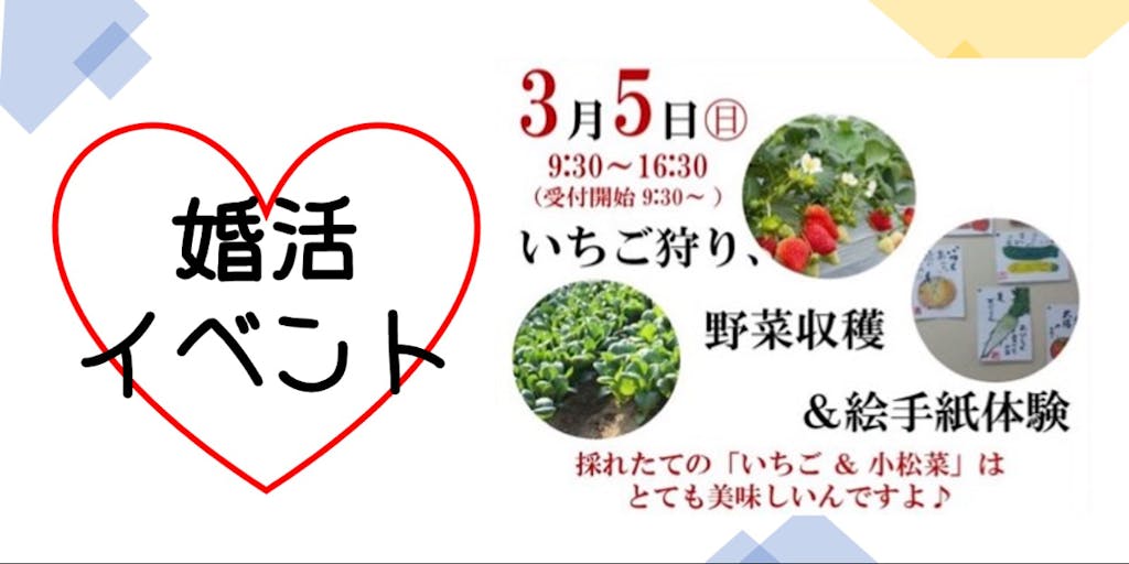 <婚活イベント>新しい出会いを『つなぐ』いちご狩り&野菜体験&絵手紙体験