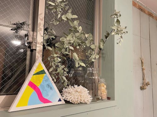 「福島県出身、かげちゃん!」抽象画を描いています。 重要文化財の運営が勉強できることと、山陰での生活に憧れ移住を決意。日常で心動いた瞬間を色で表現した抽象画を主に展示します。今回のイベントの企画も担当しています。