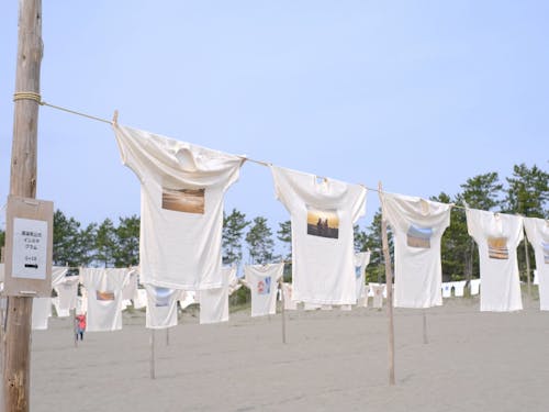 はじまりは1989年。年に1度「砂浜美術館」で開催される、Tシャツアート展をご存じですか?4キロにわたる砂浜に約1000枚ものTシャツアートが展示される一大イベントです。 Tシャツアート展のTシャツは毎回すべて一般公募によるデザインで100%オーガニックコットンのTシャツにプリントされた作品たちは、❝ひらひら❞した後、潮風の香りとともにあなたにお届けします。