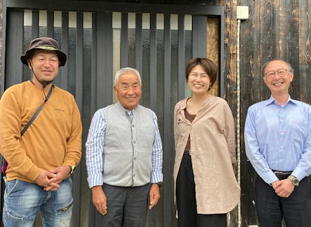写真左から ・佐藤 洋 都留市役所企画課/宝の山ふれあいの里ネイチャーセンター学芸員 ・杉本光司 代表理事 都留文科大学名誉教授 ・奈良美緒 (株)つるでつながる 代表取締役 ・石井弦一郎 都留市役所企画課参与