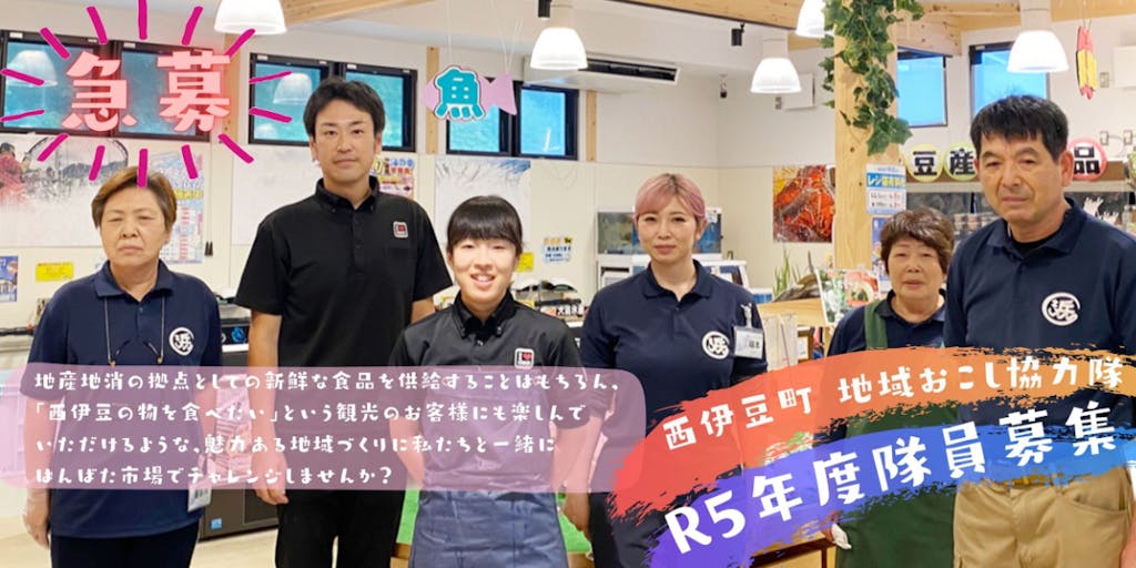 2023/03/25「はんばた市場」で西伊豆町の豊かな水産資源を知り、水産加工に携わり、お客さんと触れ合いながら、西伊豆の新たな水産業振興にチャレンジしてくれる仲間を募集します。