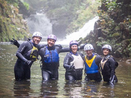 確かに温泉街は衰退し、高齢化も進み、若い人が少ないまちではありますが、このまちに6年住んでみて、光る素材にたくさん出会ってきました。 その一つで、一番可能性を感じているのが、水内川という清流、そしてそこで行われる「シャワークライミング」というアクティビティでした。僕自身もガイドとして関わる中で、参加者がプログラムの中でどんどん変化し、楽しさを全身で表現していただけるのがとても嬉しく、プログラムとしてはもちろんのこと、仕事としても最高の仕事だなと感じています。 冒頭にお伝えしたとおり、楽しいだけでなく、たくさんのことを伝えられるこのアクティビティを、今後法人の、そしてまちの柱に育てていきたいと考えています。