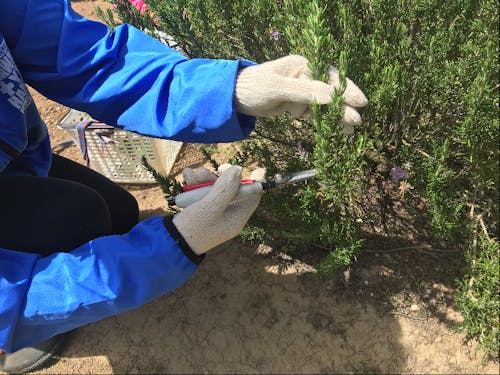 この日はローズマリーの剪定や、ボリジというハーブのお花摘みなどの作業があり、ハーブのいい香りに癒されながら、時間を忘れてハーブの剪定や摘み取り作業を楽しまれていました。