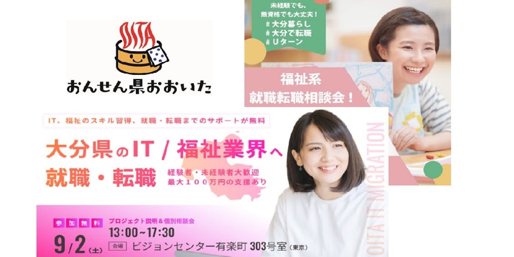 2023/09/01大分県へ移住を検討の方を対象に、IT系・福祉業界への就職・転職相談会を開催します!