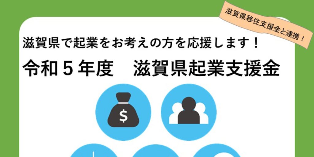 2023/05/15(公財)滋賀県産業支援プラザでは、 ・滋賀県内に居住している方 ・補助事業の完了日(最長令和6年1月末)までに滋賀県内に居住することを予定している方 を補助対象者の主な要件とし、「新たに起業する者」、「事業承継を行う者」または「第二創業を行う者」への補助事業を実施します。 滋賀県への移住および起業をお考えの皆様、ぜひ一度本補助金への応募をご検討ください。
