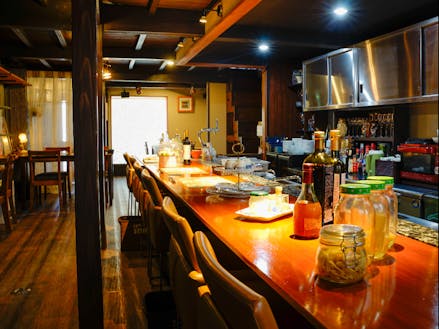 ここからはお店の具体的な情報・条件をお伝えしますね。 店舗部分は16坪(全席数18席)で、一人でも営業できるコンパクトな広さです。 駐車場は隣に3台分あります(別途契約必要)。 内装に関して、とくにこだわりのある箇所はカウンター席。料理中の手元や、動きの臨場感を楽しんでいただけるよう、キッチンと高さを合わせフラットな設計になっています。 お店にはこだわり、内装、備品、設備を揃えたため1千万円以上の初期費用がかかりました。しかし今回、郡上で楽しんで暮らし、お店を引き継いでいただける方には、お話次第ではありますが、これらの全てを半額以下でお譲りできればと思っています。さらにお気持ちのある方には相談して、ご希望の金額に添えるよう条件を考えていきたいとも思っています。もちろん不要なものはこちらで引き取ります。営業できる設備は揃っていますので、営業許可さえ取得すればすぐに営業していただけます。