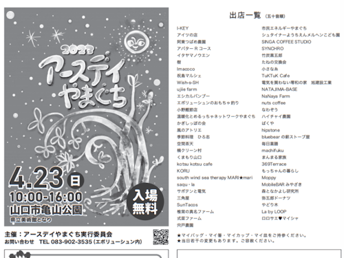 アースデイやまぐちは10回目を迎えた今年は5人の実行委員と8名の当日ボランティアによる運営にもかかわらず、2000人を集客、出店も60店舗、リピーターが非常に多いイベントになりました。もちろん非営利無料です。 このイベントを未来に繋いでいきたい、そしてみんなの地元でも開催して広がって欲しい。 アースデイやまぐちが続けて来れた理由があります。問題もあります。 一緒に楽しんで2024年のアースデイやまぐちを手伝ってくれる方、意見をくださる方、ほか大募集です。