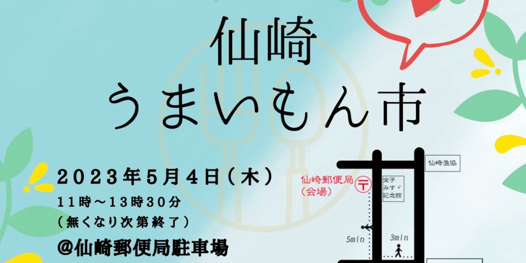 「仙崎うまいもん市」 5月4日(木・祝)11時〜13時半 場所:仙崎郵便局駐車場 (長門市仙崎1302−10)