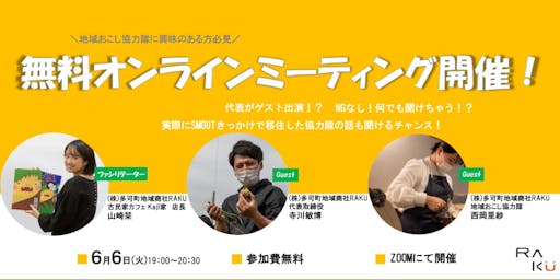▷多可町地域商社「RAKU」HP:https://raku-taka.com/ ▷多可町定住支援サイト「タカ、と。」:https://teiju.takacho.net/ ▷多可町地域おこし協力隊FB:https://www.facebook.com/okoshitaka/