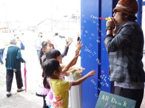 1.シャボン玉おじさん 着任してすぐに、廃材アートのイベントを企画。子どもたち向けに何かできないかと考え、シャボン玉を企画してみたところ、子どもたちから喜ばれたことから、その後も「シャボン玉おじさん」としてイベント時に活躍することになりました。