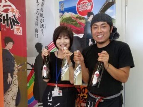 2.蔵人 長門産の商品開発をしたいと考えていたところ、同級生が酒蔵を復活させようとしているタイミングで出会い、長門のお酒作りに取り組むことになりました。そして、2018年に「純米大吟醸むかつく」が誕生。現在でも長門の各地で販売されています。