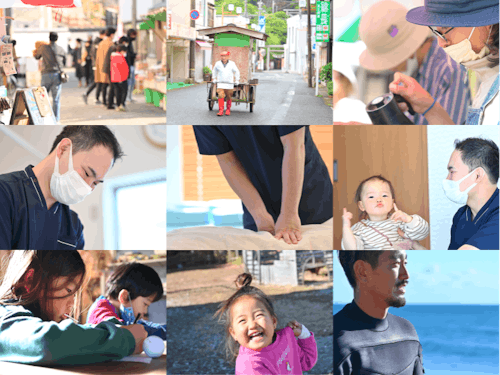 それでも、 勝浦が好きで来てくれた人たち、 やっぱり勝浦がいいと戻ってきた人たち、 勝浦で「今」を頑張っている人たちが、勝浦には暮らしています。 そんな人たちと一緒に、未来をつくっていけたら。 これから生きてゆく、子どもたちの為にも−−−。 そんな思いを込めて制作しました。