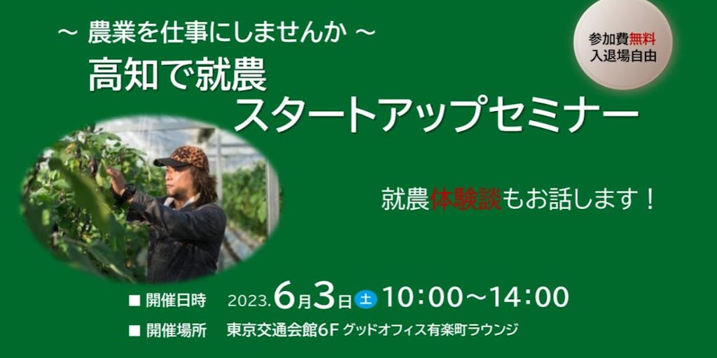 【6/3・東京】~農業を仕事にしませんか~高知で就農スタートアップセミナー【個別相談有り】