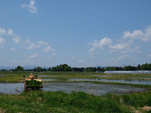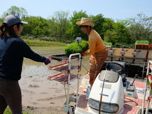 青空の下、田植え作業をしました。 田んぼが離れた場所にある場合、農機具などをその都度移動させなければいけません。 笑顔で和やかに作業をされていましたが、植える数量や順番・ペース・スケジュールをしっかりとマネジメントしているからこそ、スムーズに作業が進んでいきます。