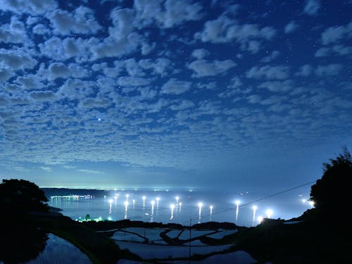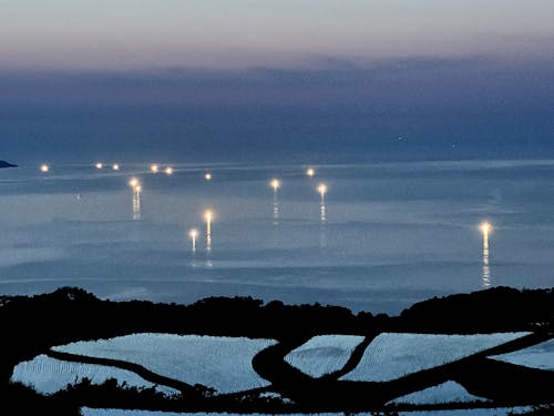 絶景スポット”東後畑棚田(ひがしうしろばた たなだ)の漁火(いさりび)”