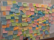 設定された一つのテーマに関して利用者は付箋になんでも書いて貼ってよし。 自分の意見を書くのも、他の人の意見に対してコメントするのもアリ。 書く付箋の形を変えることで、意見を書いているのか、意見に対するコメントなのかがひと目でわかります。 また、様々なテーマを設定することで、世代を超えた共通の話題を探します。 まずは「好きな映画は?」というテーマを設置し、たくさんのコメントを書き込んでもらっています。 「えんぼーど」によって、顔を合わせなくても気軽にコミュニケーションをとることができる場を作りました。