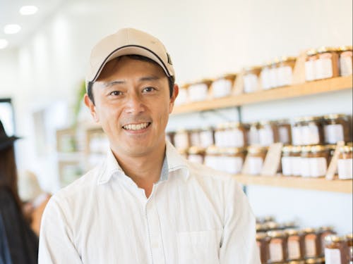 □松嶋 匡史さん 瀬戸内ジャムズガーデン 代表取締役 1972年生まれ。新婚旅行で訪れたパリで美しいジャムに出会い、ジャム店の起業を決意。2003年にジャムの製造販売をスタート。2007年に会社を退職し、愛知県から周防大島へIターン。カフェとギャラリーを併設した手づくりジャム専門店をオープン。 果実本来の香りと味を求め、収穫時期にもこだわりぬいたジャム作りはテロワールを感じさせる唯一無二の味わい。そのおいしさは瞬く間に広がり、いまでは全国に100店舗以上の取り扱い店をもつ。