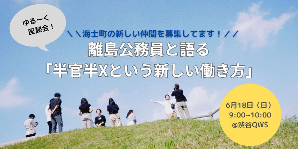 2023/06/17\\6月18日(日)は渋谷QWSにて、島で働いている海士町の役場職員と、島のまちづくりについてざっくばらんに、そして楽しく語り合いましょう!//