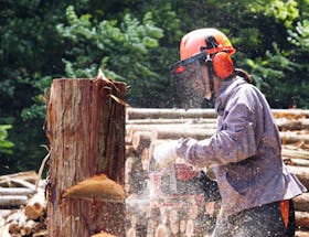 【主なプログラム内容】 チェーンソーによる伐⽊等特別教育とロープワーク実習等 ・伐木等作業/チェンソー/振動障害についての知識 ・チェンソー操作/点検/伐木等の方法 ・ロープワーク講義/実習 ・伐木造材実習 ・林業相談/就業相談 ・地域交流プログラム/懇親会