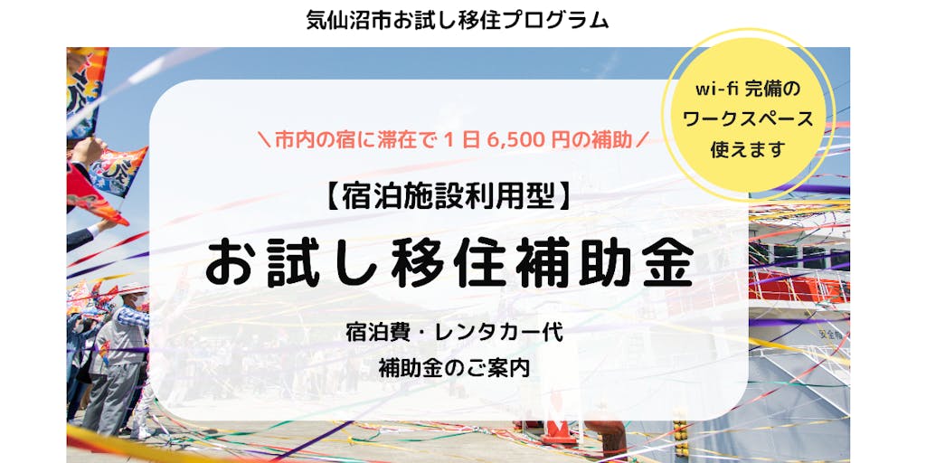 〜〜気仙沼市お試し移住補助金事業〜〜 なんと1日あたり”6500円”の滞在補助がでます◎ 連休を活用して、気軽に気仙沼滞在をしてみませんか?