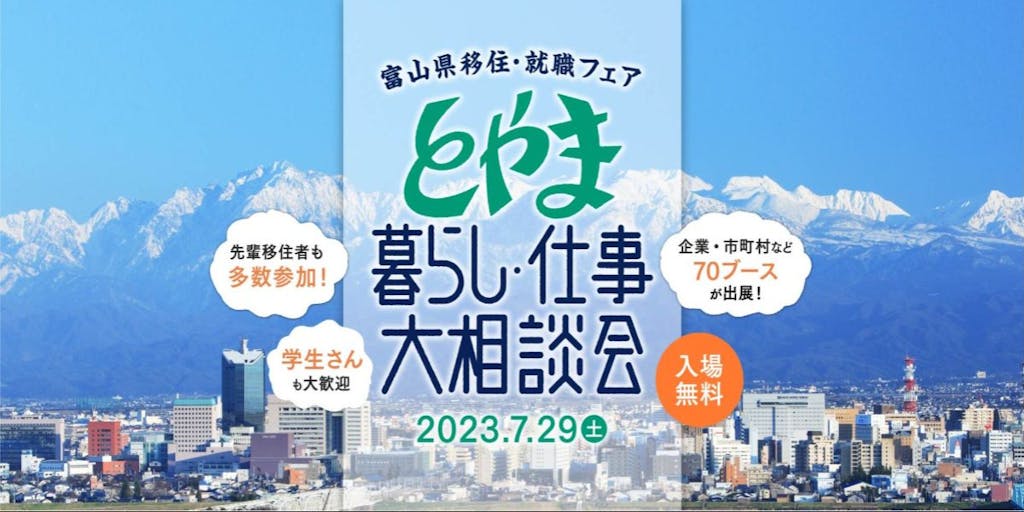 【7/29(土)】<東京開催>富山県移住・就職フェア とやま暮らし・仕事大相談会