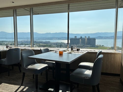 近くのカフェから見渡す琵琶湖、比叡の山々と琵琶湖大橋♪