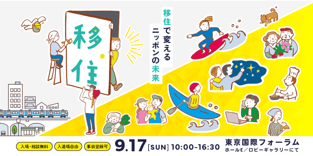 《ふるさと回帰フェアについて》 日時:2023年9月17日(日)10:00~16:30 会場:東京国際フォーラム(ホールE) 内容:①自治体相談コーナー ②移住初心者向けセミナ ③農林漁業団体・官公庁等の移住支援・活動紹介コーナー ④ニッポン全国ふるさとマルシェ