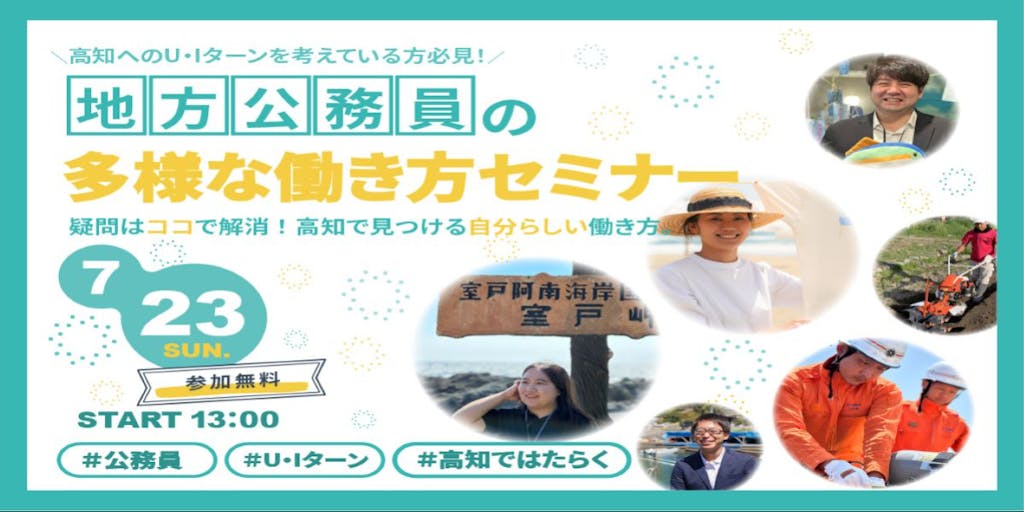 \こんな方におすすめ!/ ・高知へのU・Iターンを考えている ・官公庁への就職・転職を考えている ・地方公務員(市町村職員)の働き方を気軽に質問してみたい ・公務員試験の面接対策として現場の雰囲気を掴んでおきたい