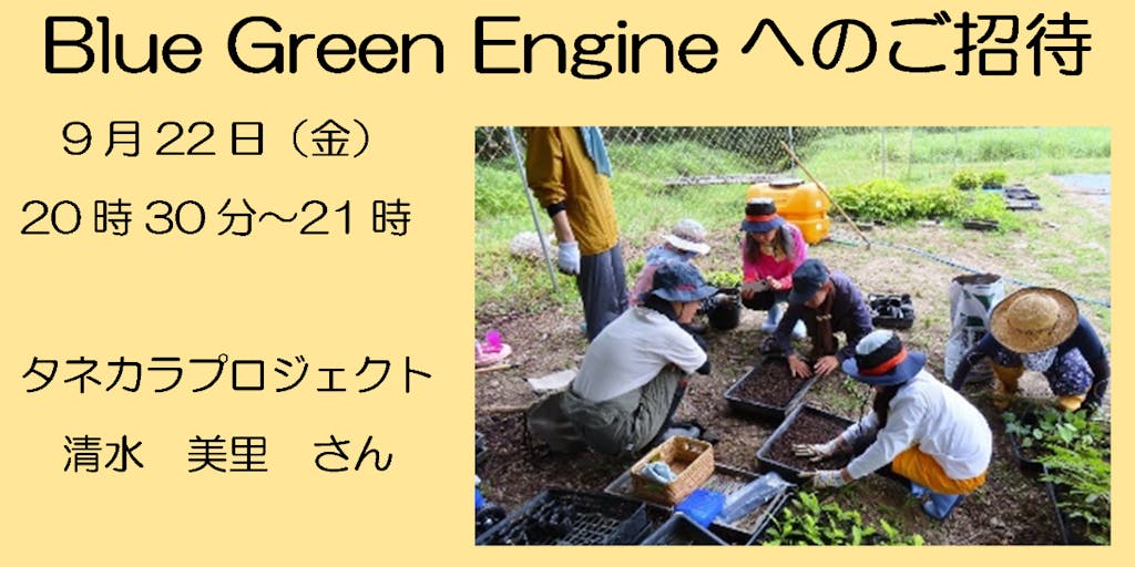 ・・・・・・・・・・・・・・・・・・・・・・・・・・・・・ 第6回 Blue Green Engine 開催日時:令和5年9月22日(金) 20:30~21:00 ※参加費無料・申込不要 ・・・・・・・・・・・・・・・・・・・・・・・・・・・・・
