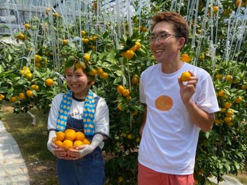 永田祐介さん・華香さんご夫妻 永田祐介さんプロフィール:福岡県出身。非農家出身。 サラリーマンとして 2 年近く勤務後、農業に興味を持つようになり、 農業大学校に通い、農業を学ぶ。その後、農業法人にて 3 年間勤務し、 平成 30 年に大分県佐伯市に夫婦で移住し、みかん農家として独立就農。 ハウスミカン、露地みかんの栽培に取り組み、5 年目の今年、初めての収穫を迎える。 【経営概況】 みかん(ハウス・露地)栽培 約 1ha 黒毛和牛の繁殖 1頭