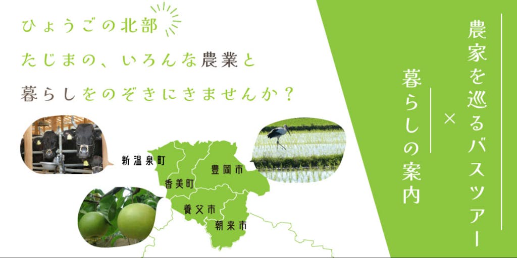 農家を巡るバスツアー×暮らしの案内で、たじまの特徴ある農業のエッセンスとたじま暮らしってこんな感じだということが、理解できます。 たじまの農業って、きびしい面もあるけど、環境創造に参加できたり、世界に誇る但馬牛を育てられたり、夢があると思いませんか? こんな人に出会えることを期待しています。 ・農業に興味がある方 ・もくもくと農業をしたい方 ・環境創造型農業や有機の米づくり、野菜づくりに興味のある方 ・但馬牛、香住なし、岩津ねぎに興味のある方 ・田舎暮らし、里山暮らしに興味がある方 ・自然の中で子育てしたい方 ・たじま地域に興味のある方