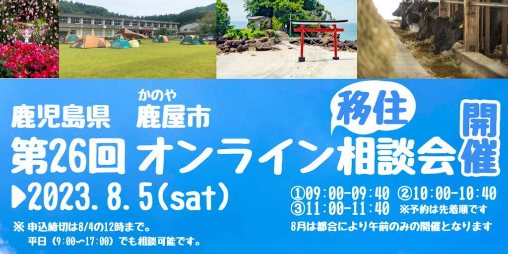 「移住希望者ともっとお話したい!」 「鹿屋の良いところ、悪いところ、全て伝えたい!」 「移住希望者が抱える移住に対する不安を少しでも解消したい!」 そんな思いで『オンライン移住相談会』を行なっています。