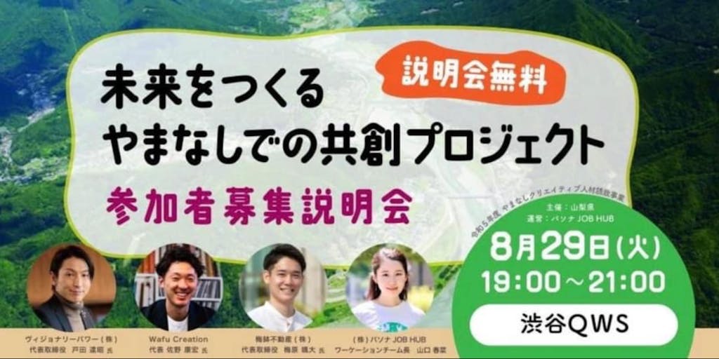 8/29夜現地渋谷QWS開催!「未来をつくるやまなしでの共創プロジェクト」参加者募集説明会