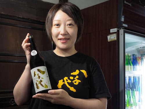 むつみでは、酒米の田んぼ→酒米を精米する「とう精工場」→湧水→酒蔵まで、その循環をE-bikeで巡ります。 訪れる酒造は、創業136年の老舗「八千代酒造」。5代目の蒲久美子(かば・くみこ)さんは、「今もなお続く伝統に革新を加え、新たな価値を生み出すことに挑み続ける」ことを理念に掲げ、自ら醸した新ブランド「La+ YACHIYO(ラプラスヤチヨ)」を皮切りに、多様化する現代のライフスタイルに合わせた日本酒や素敵な飲み方を次々と提案する、注目の女性杜氏さんです。