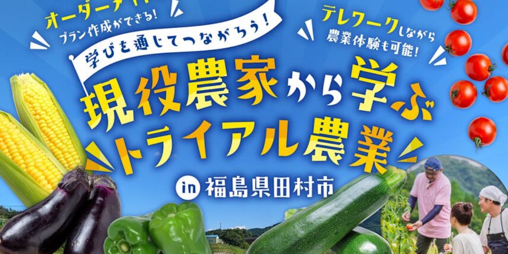 福島県田村市では、農業に興味のある方に向けてオーダーメイド型農業体験プログラム「トライアル農業」を実施しています。 最短1日から長期間まで受け入れ可能なので、田村市の農業の雰囲気を知りたいという方から、本格的な就農前に本当に自分にできるか長期で試してみたいという方まで、参加者一人ひとりに合ったプログラムをスタッフが提案いたします。