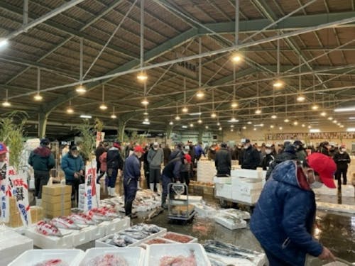 2日目(4:00~12:00) 1.魚市場へ ・競りの見学 2.仕事のお手伝い ・開店準備 ・魚屋の品出し ・接客 3.商品開発担当者に話を聞く ※実際の仕事状況によって変更があります。